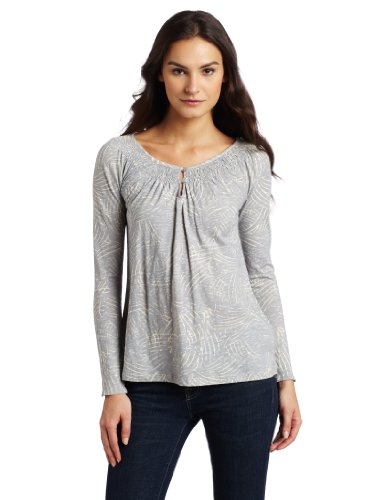 Calvin Klein Jeans Women's Printed Smocked Scoopneck Top, Seagull, Medium